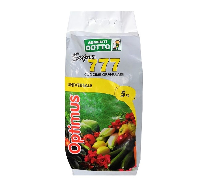 Optimus Super 777 è un concime per vigneto, orto e giardino contenente elementi nutritivi che vengono rilasciati gradualmente alle piante, con un’azione che si protrae nel tempo.